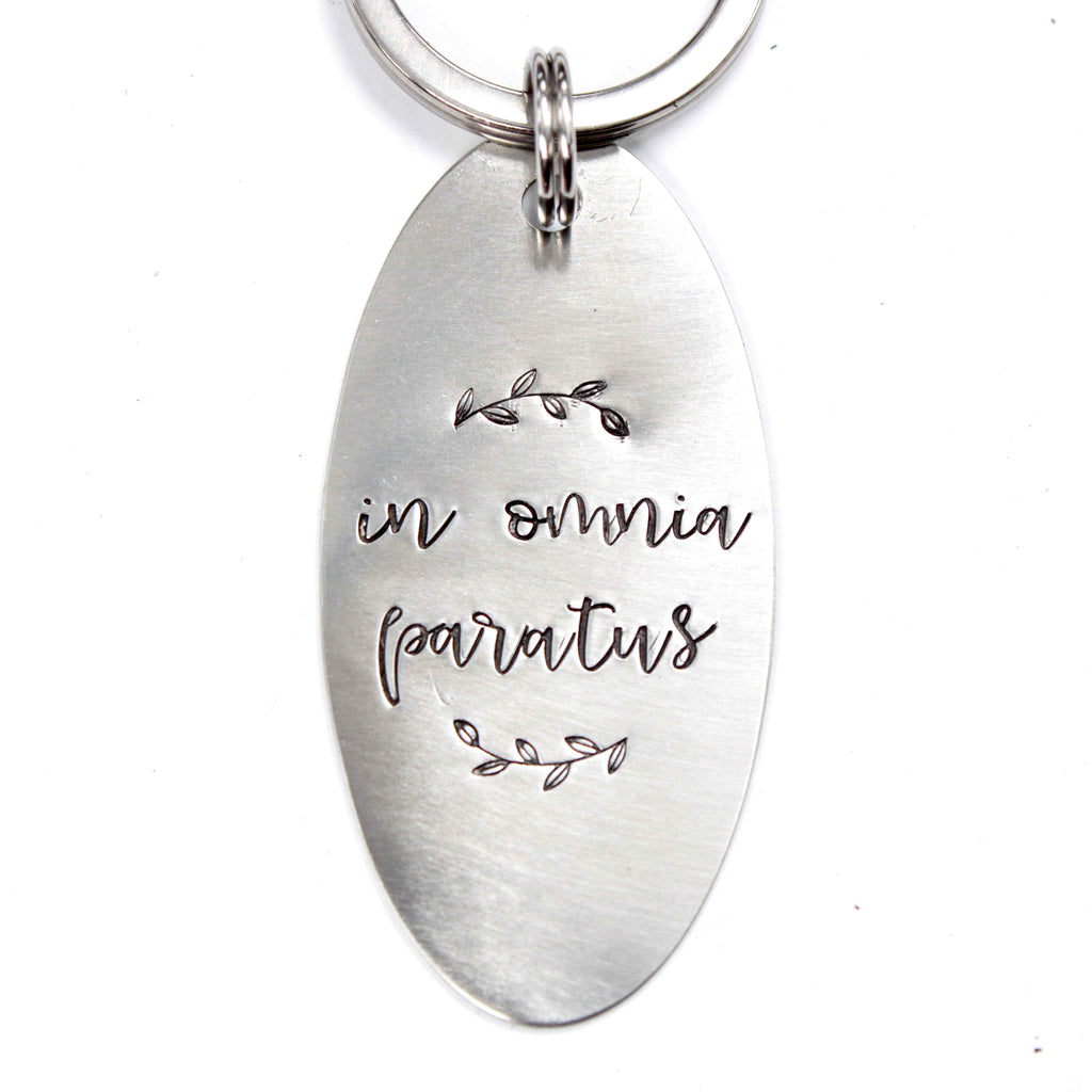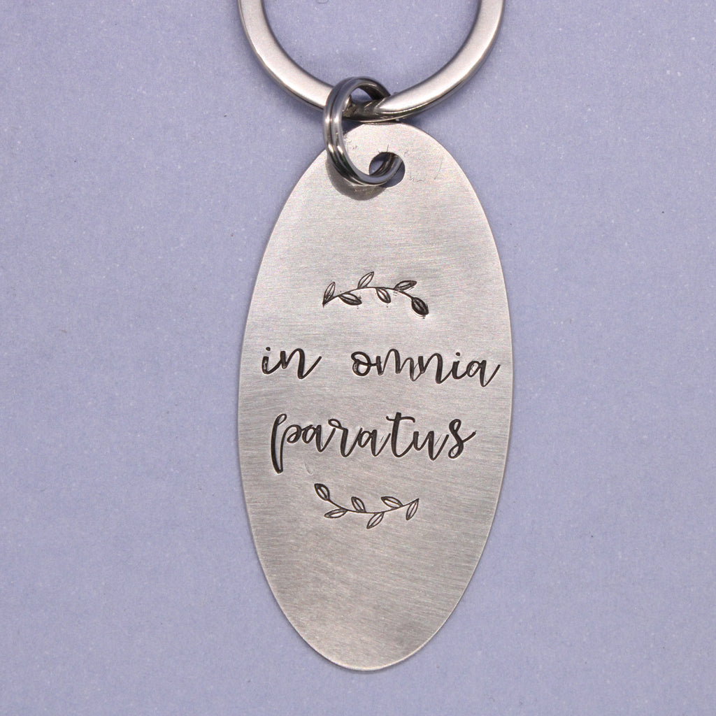"In omnia paratus" (Prepared for all things / ready for anything) Keychain
